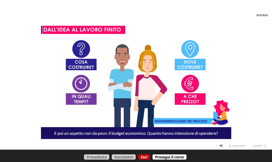 Al termine del corso è obbligatoria la compilazione di un questionario di gradimento affinché l’utente possa esprimere un giudizio sui diversi aspetti del corso fruito.